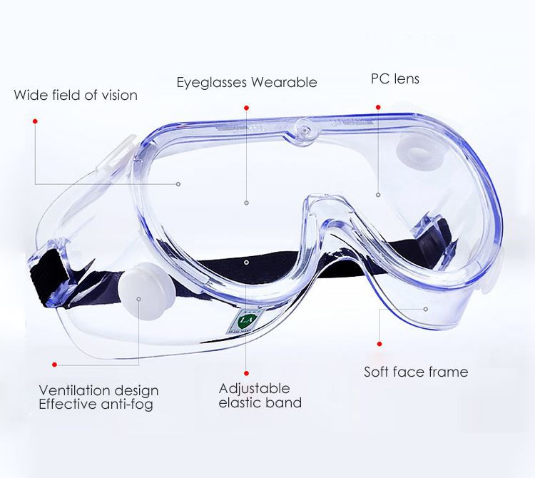 Medical safety glasses, usually large with shields and perhaps padding, used as eye protectors from flying particles, dust, wind, chemical fumes or other external hazards. See safety glass; eye shield; industrial spectacles. Safety goggles, if worn correctly, can provide sufficient protection from these hazards.